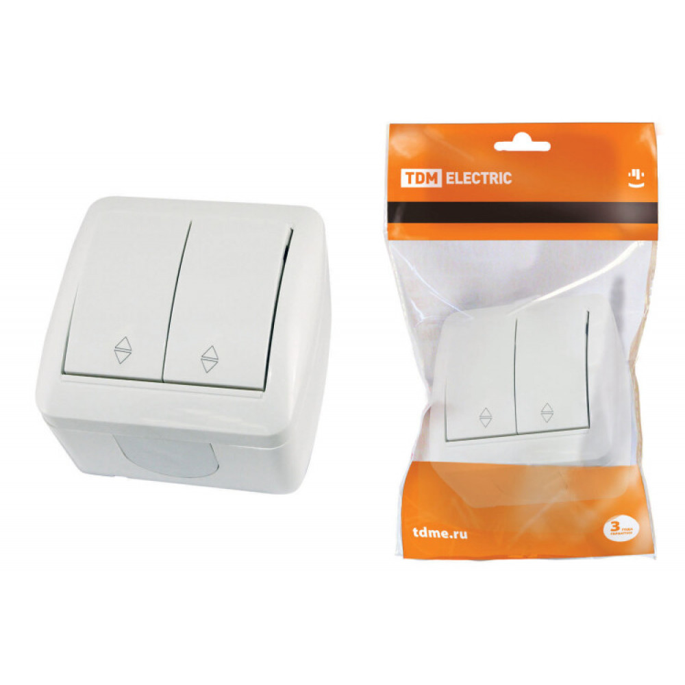 Описание Выключатель на 2 направления 2-кл. открытой установки IP44 10А белый "Селигер" SQ1818-0012