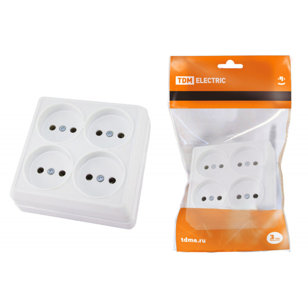 Розетка четырехместная 2П открытой установки IP20 10A белая "Ладога" SQ1801-0120, Розетка открытого монтажа