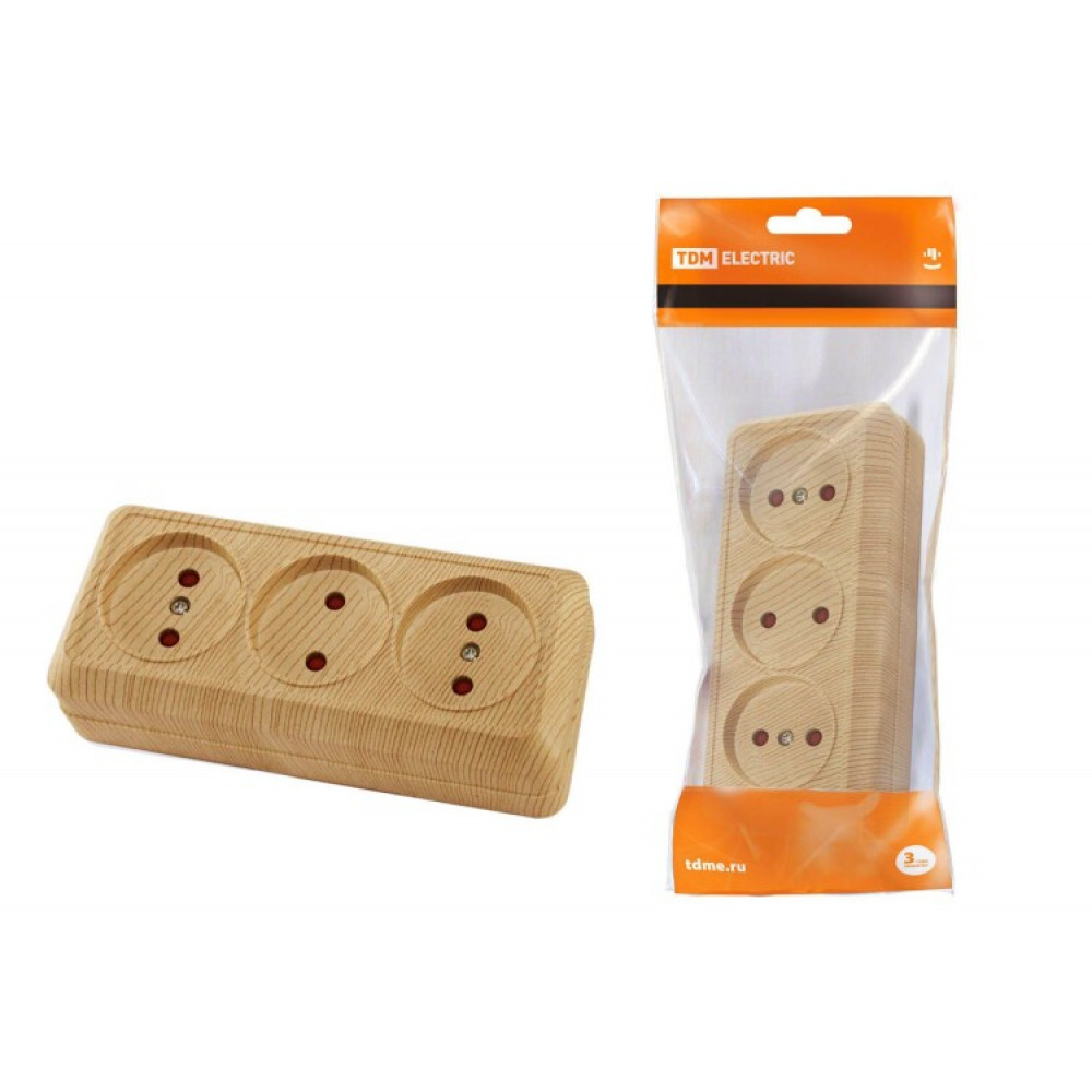 Розетка 3-х местная горизонтальная 2П открытой установки IP20 10A с з/ш сосна "Ладога" SQ1801-0425, Розетка открытого монтажа