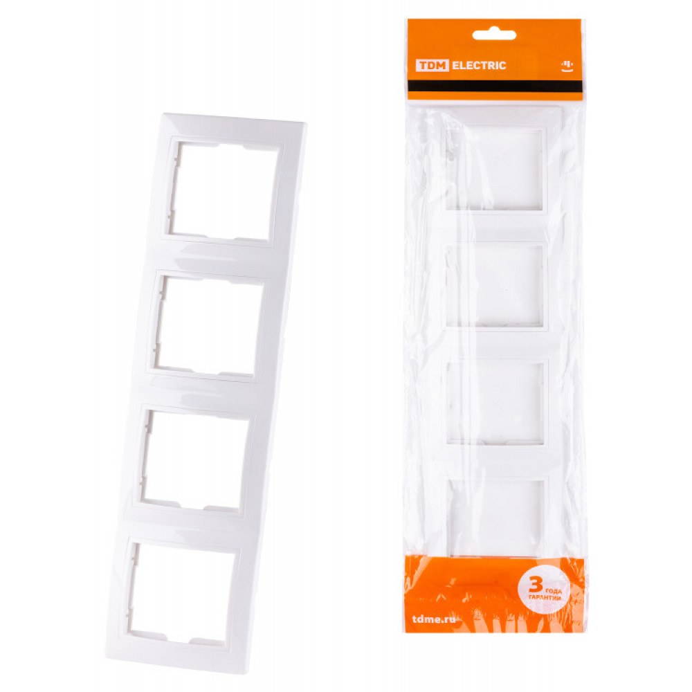 Описание Рамка 4-х постовая вертикальная белая "Таймыр" SQ1814-0029