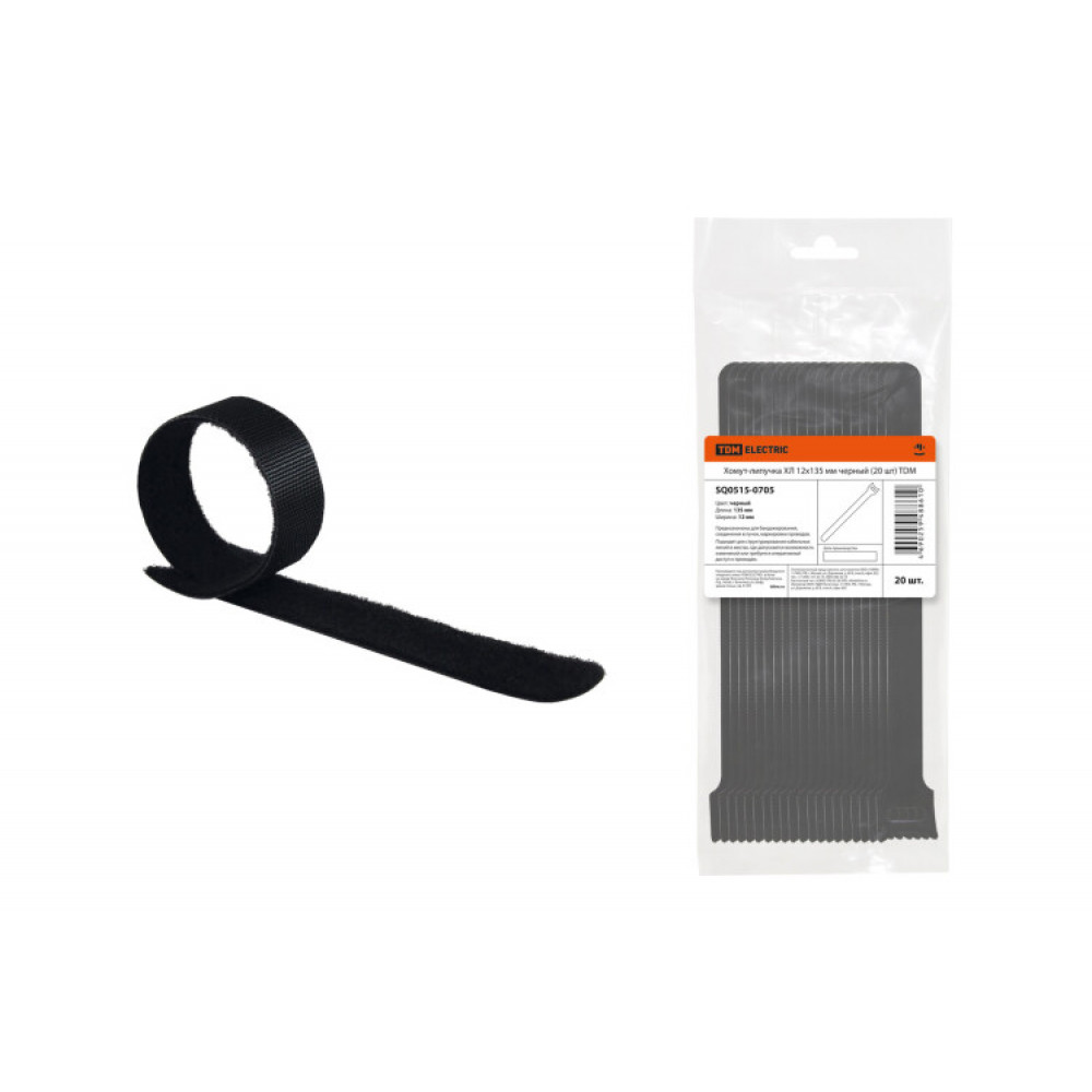 Описание Хомут-липучка ХЛ 12х135 мм черный (20 шт) SQ0515-0705