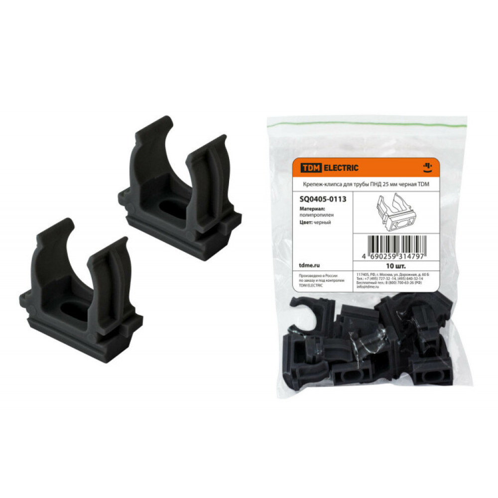 Крепеж-клипса для трубы ПНД 25 мм (10 шт.) черная SQ0405-0113, Труба и короб для прокладки кабеля