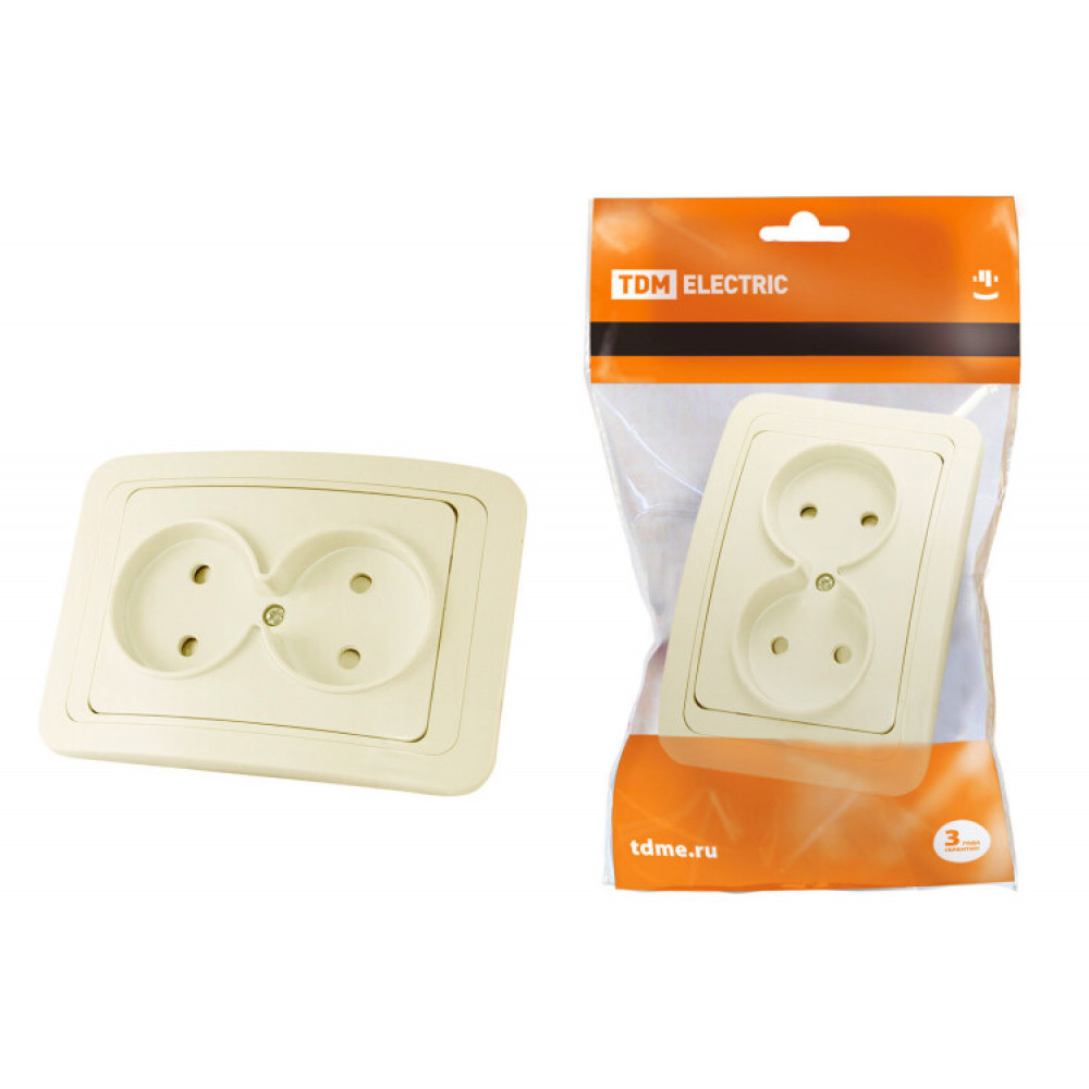Розетка двойная 2П 10А c защитными шторками сл. кость "Валдай" SQ1804-0125, Розетка скрытого монтажа