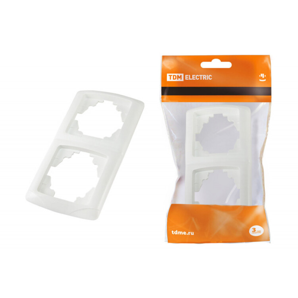 Описание Рамка 2-х постовая вертикальная белая "Онега" SQ1805-0027