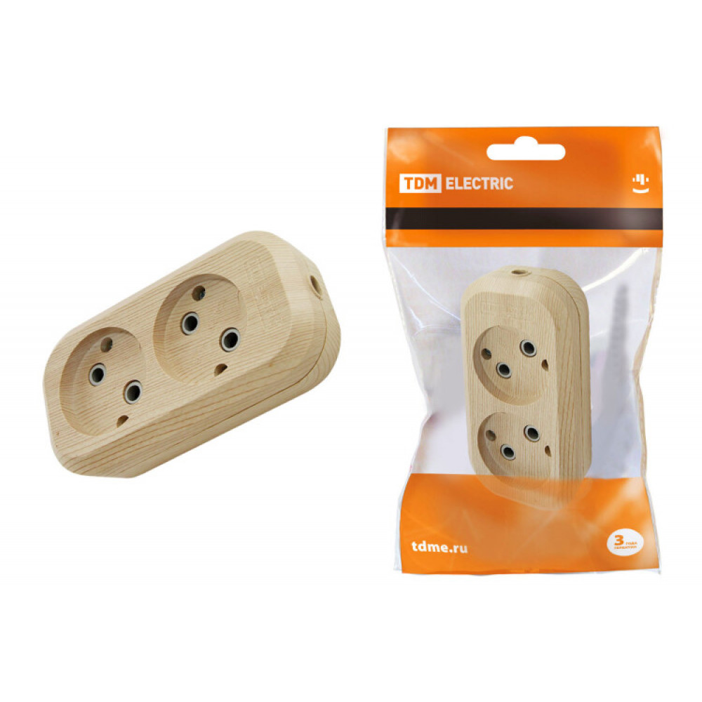 Колодка розеточная 2 гнезда 2П б/з 10А 250В "Эко" (сосна) SQ1806-0045, Изделие электроустановочное