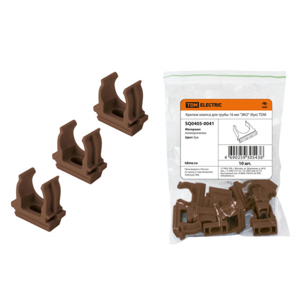 Крепеж-клипса для трубы 16 мм (10шт) "ЭКО" (бук) SQ0405-0041, Труба и короб для прокладки кабеля
