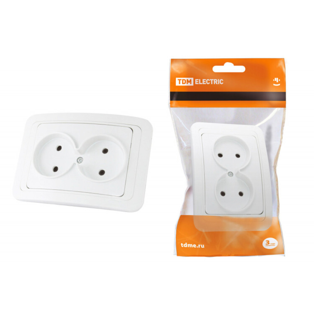 Описание Розетка двойная 2П 10А белая "Валдай" SQ1804-0009