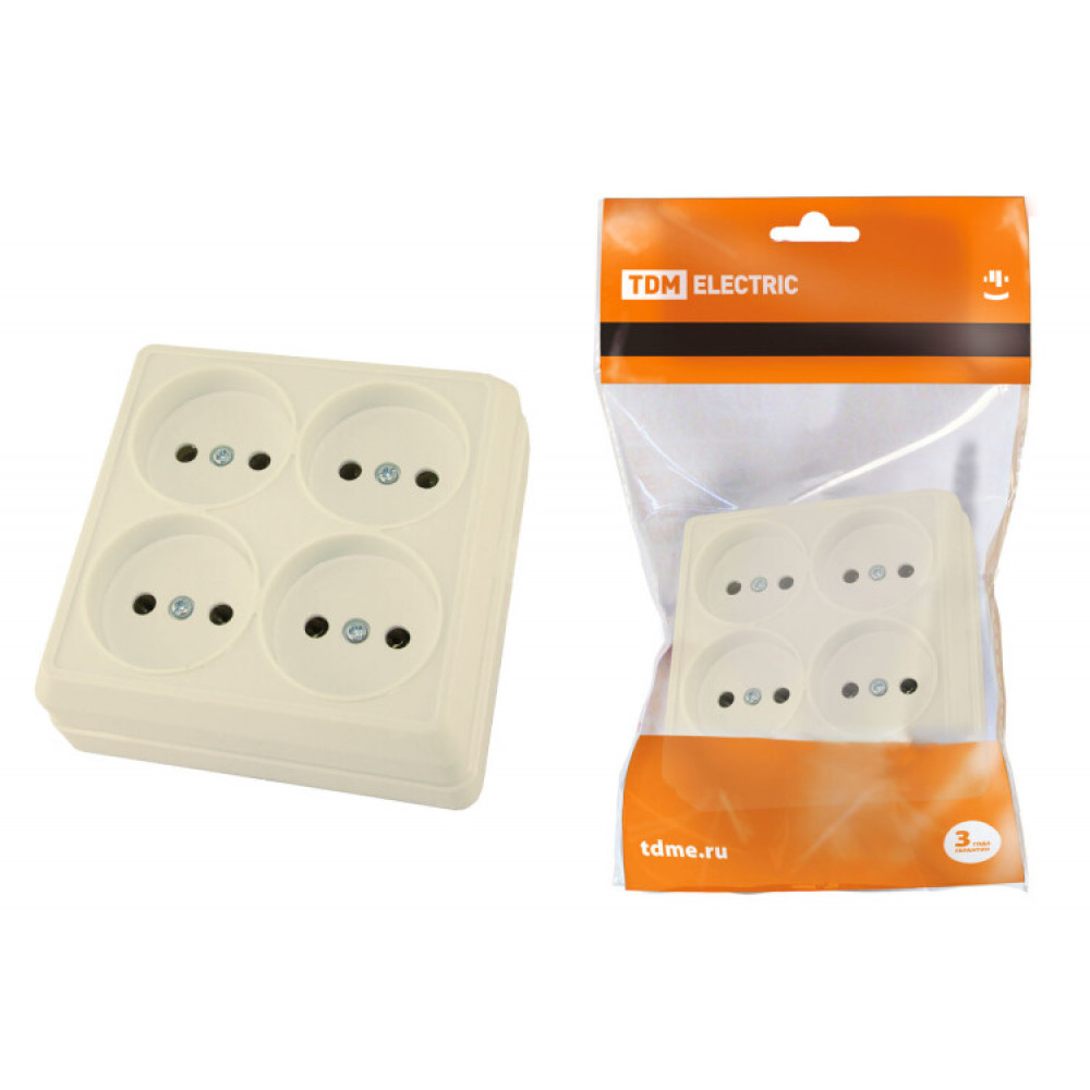 Розетка четырехместная 2П открытой установки IP20 10А сл. кость "Ладога" SQ1801-0220, Розетка открытого монтажа