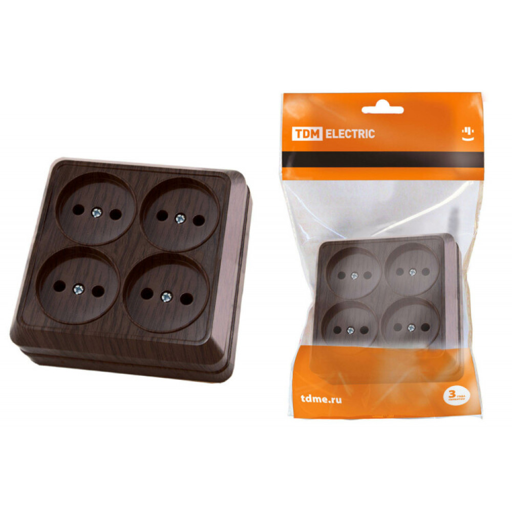 Розетка четырехместная 2П открытой установки IP20 10A бук "Ладога" SQ1801-0320, Розетка открытого монтажа