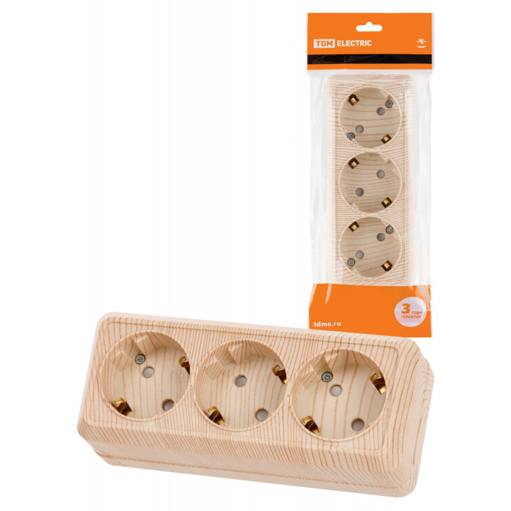 Доставка Розетка 3-х местная горизонтальная 2П+3 открытой установки IP20 16A с з/ш сосна "Ладога" SQ1801-0427