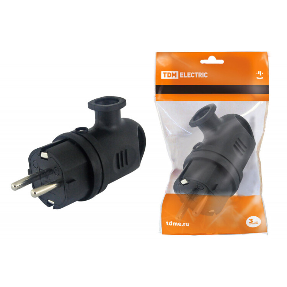 Вилка угловая с ушком каучук 2Р+РЕ 16А 250В IP44 SQ0612-0004, Вилка, колодка