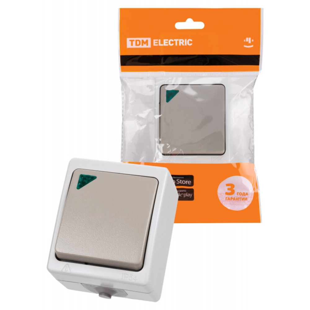 Доставка Переключатель на 2 направления 1-кл. с подсветкой открытой установки IP54 10А серый "Вуокса" SQ1803-0005