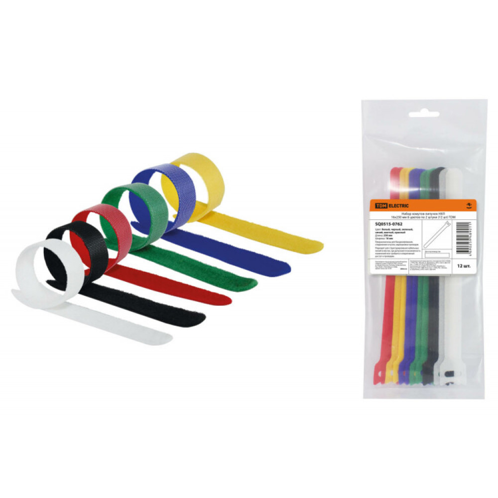 Описание Набор хомутов-липучек НХЛ 16х250 мм 6 цветов по 2 штуки (12 шт) SQ0515-0762