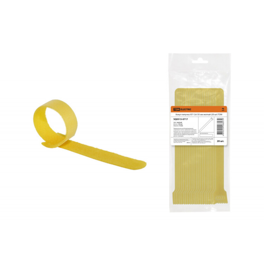 Описание Хомут-липучка ХЛ 12х135 мм желтый (20 шт) SQ0515-0717