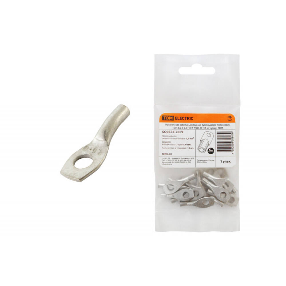 Описание Наконечник медный луженый ТМЛ 2,5-6-2,6 ГОСТ 7386-80 (15 шт./упак.) SQ0533-2009