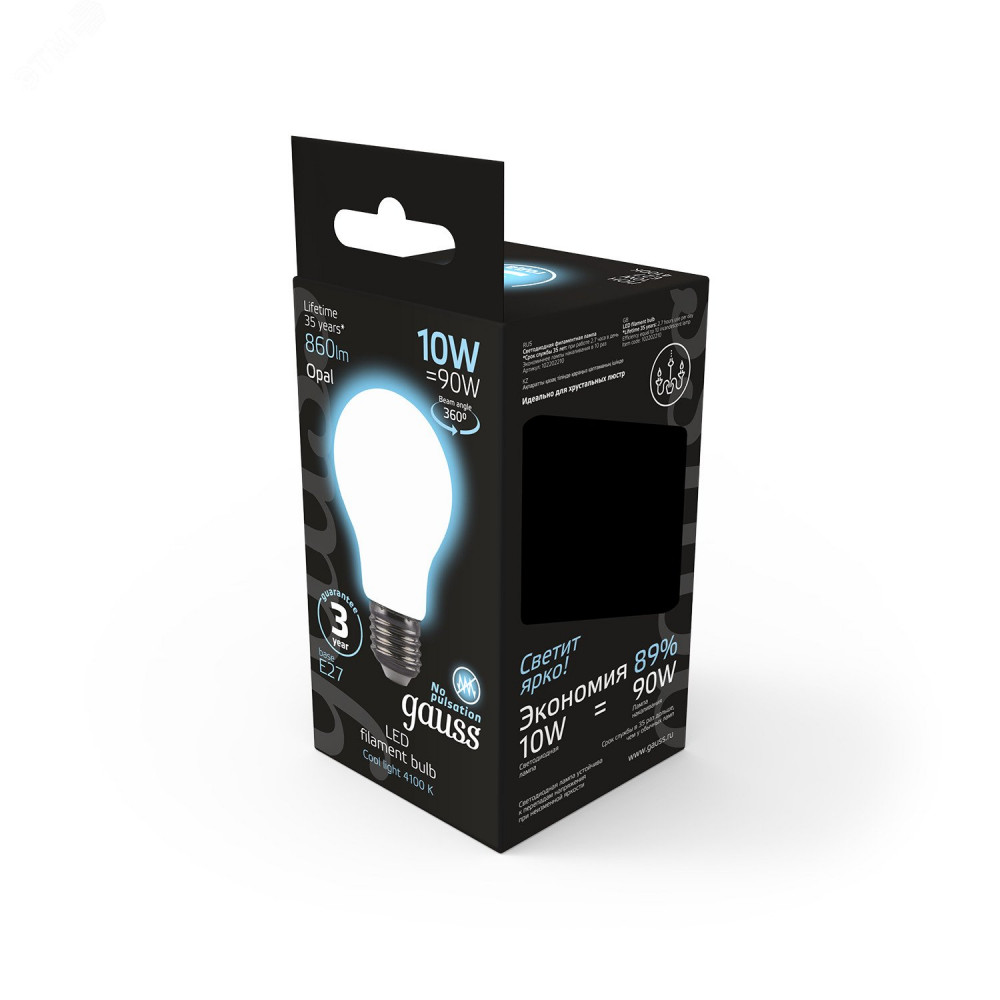 Описание Лампа светодиодная филаментная Black Filament 10Вт A60 грушевидная матовая 4100К нейтр. бел. E27 860лм 102202210