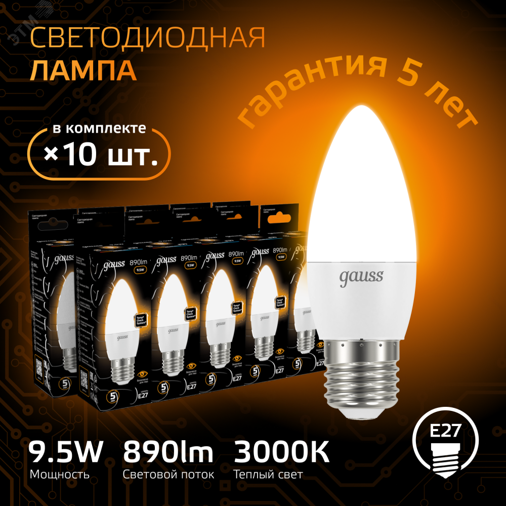 Лампа светодиодная Black 9.5Вт свеча 3000К тепл. бел. E27 890лм 103102110, Лампа светодиодная