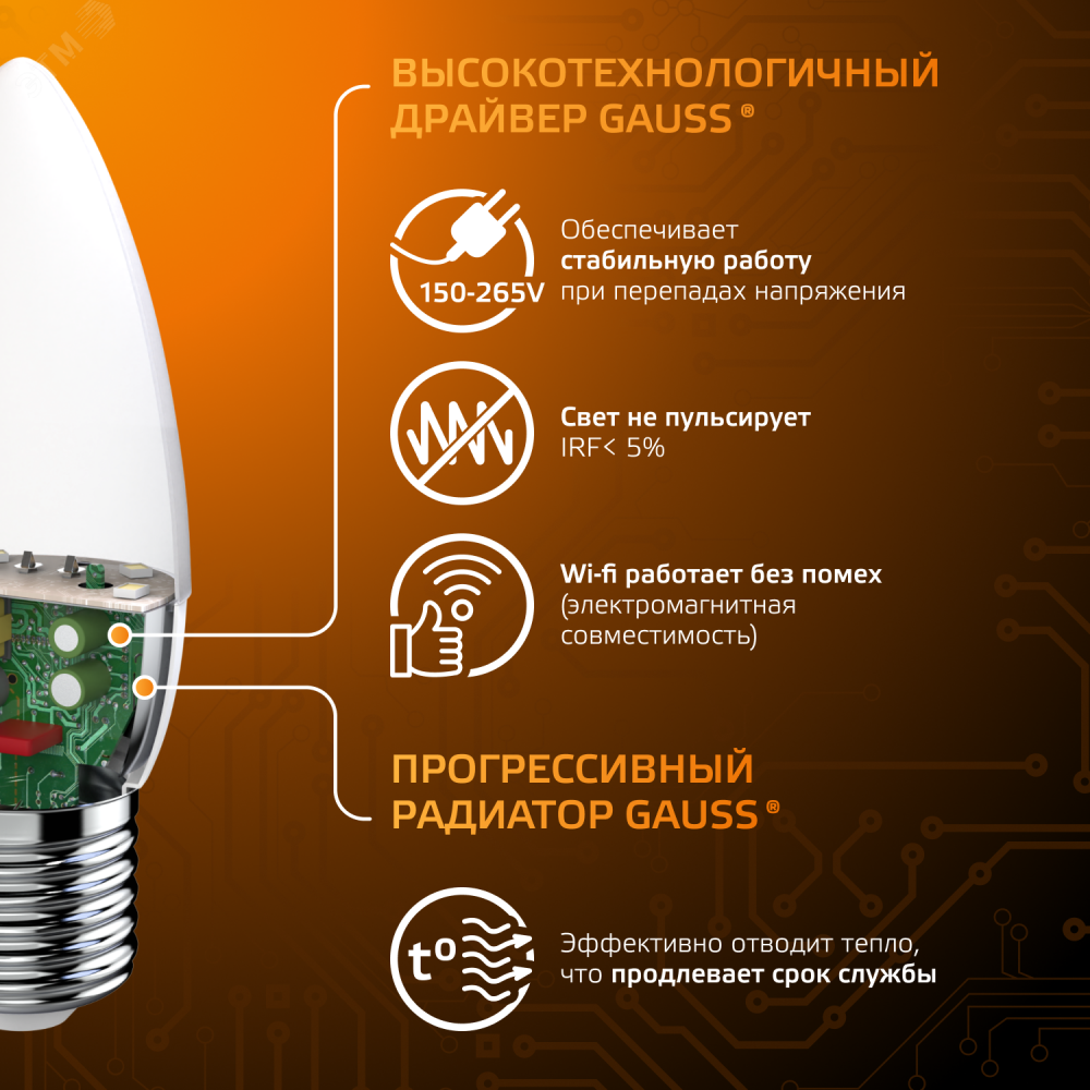 Описание Лампа светодиодная Black 9.5Вт свеча 3000К тепл. бел. E27 890лм 103102110