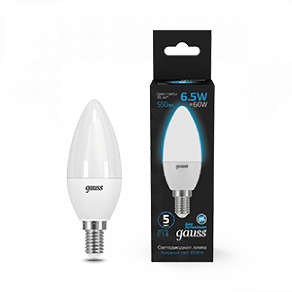 Описание Лампа светодиодная Black 6.5Вт свеча 6500К холод. бел. E14 550лм 103101307