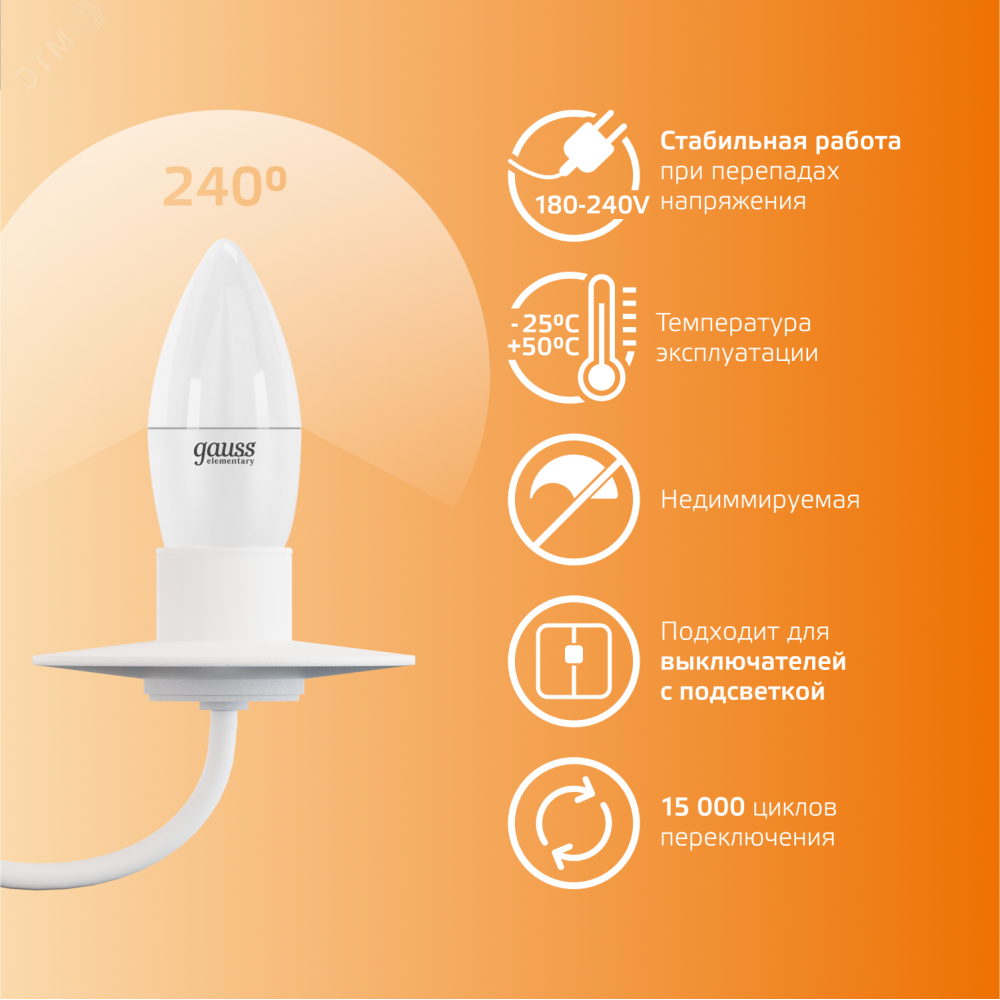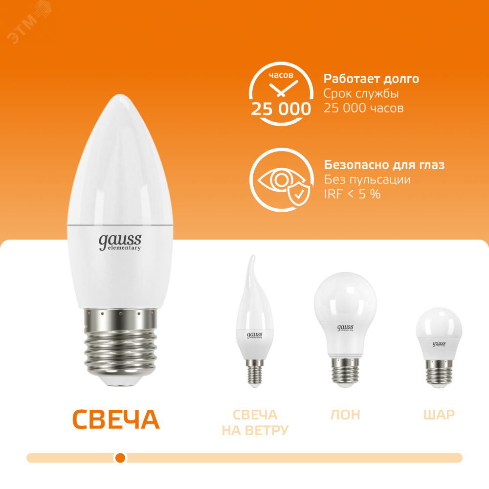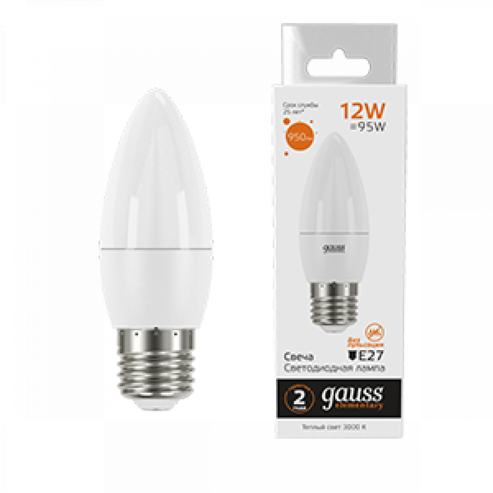 Описание Лампа светодиодная Elementary 12Вт свеча 3000К тепл. бел. E27 950лм 30212