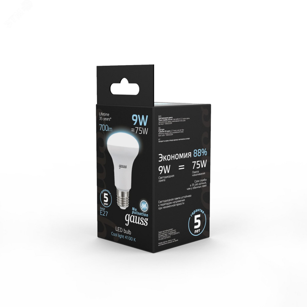 Описание Лампа светодиодная Black 9Вт R63 рефлектор 4100К нейтр. бел. E27 700лм 106002209