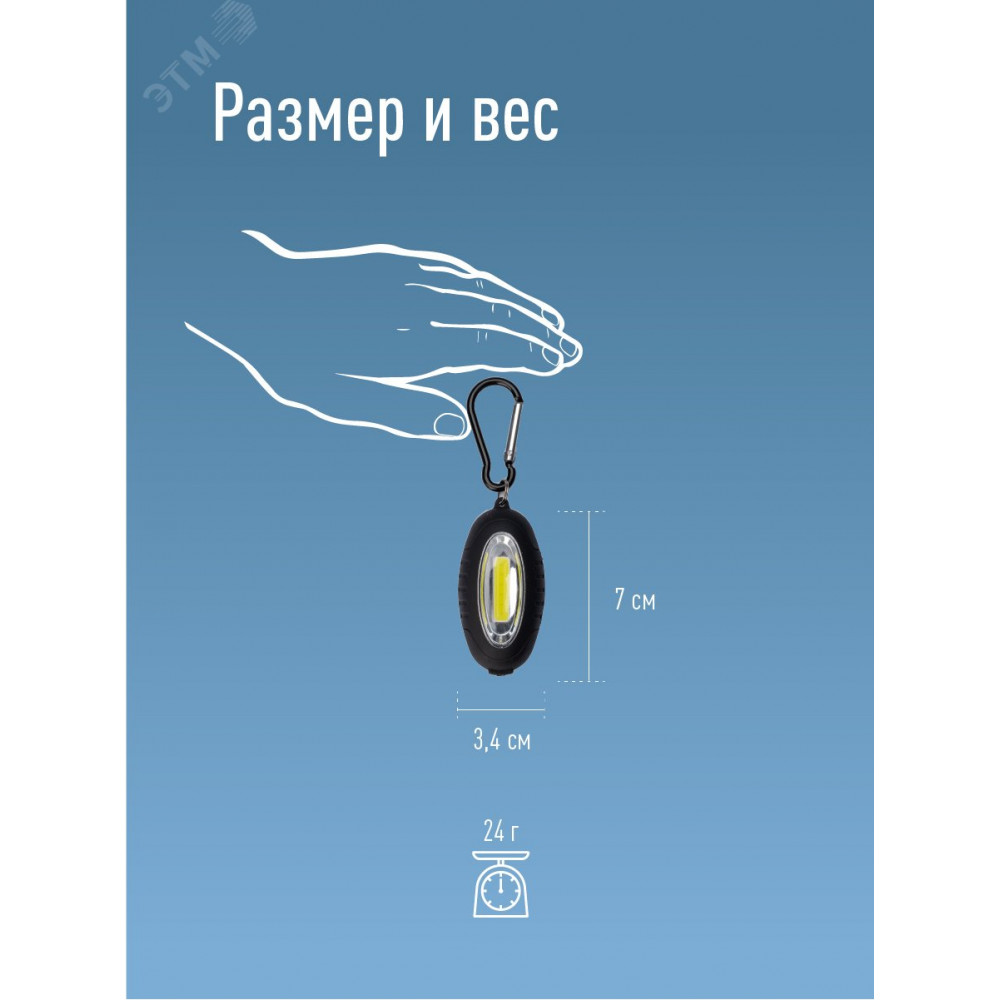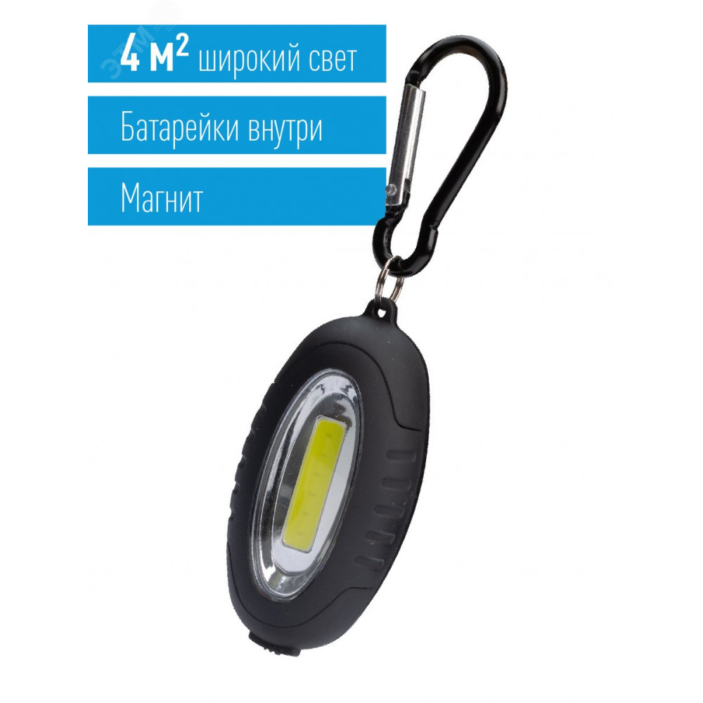 Описание Фонарь брелок 0.5ВтCOBLED 2xCR2032 в комплектe корпус ABS-пластик c каучук напыл магнит карабин KOC201B