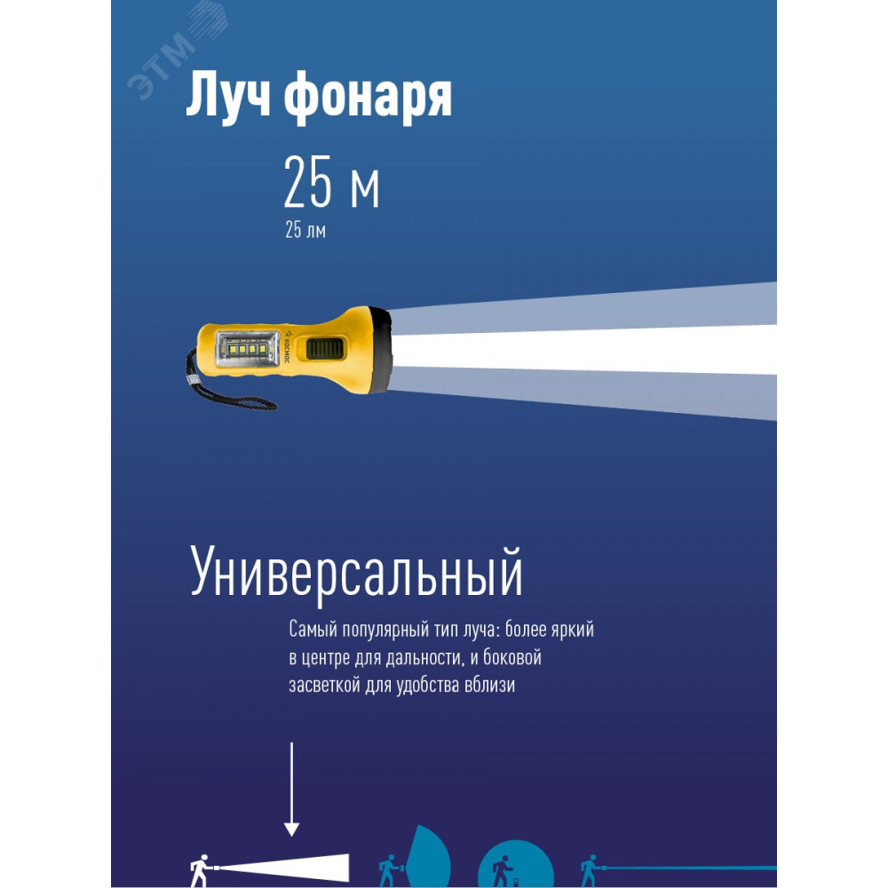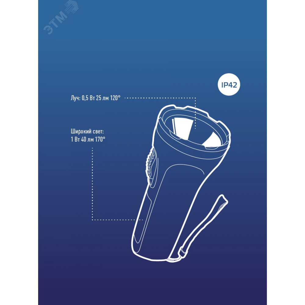 Описание Фонарь ручной 0.5ВтLED+4SMD(1Вт) 1xAA корпус ABS-пластик ремешок ручной KOC119B