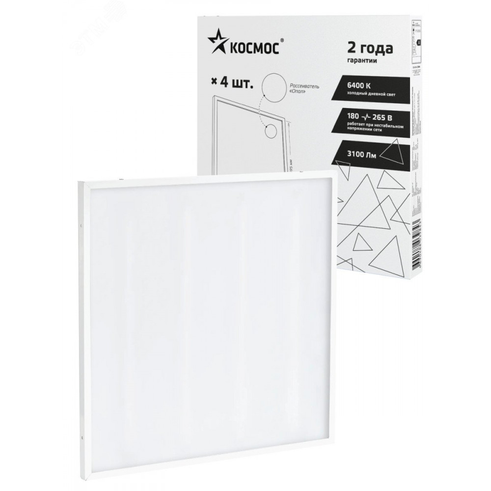 Описание Светильник светодиодный 36Вт 6500К 176-264В 595х595х18 ДВО офисный опал панель KOC_DVO36W6.5K_OP