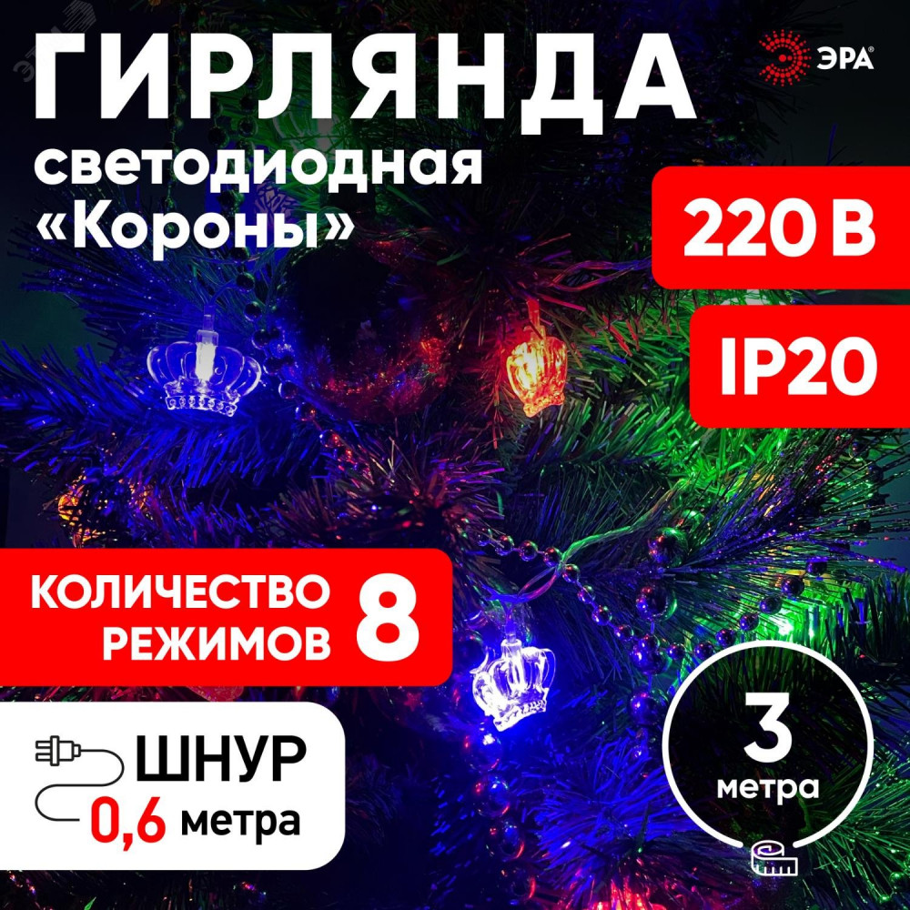 ENIN-3K Гирлянда LED Нить Короны 3 м мультиколор, 220V, IP20 (36/864) Б0041898
