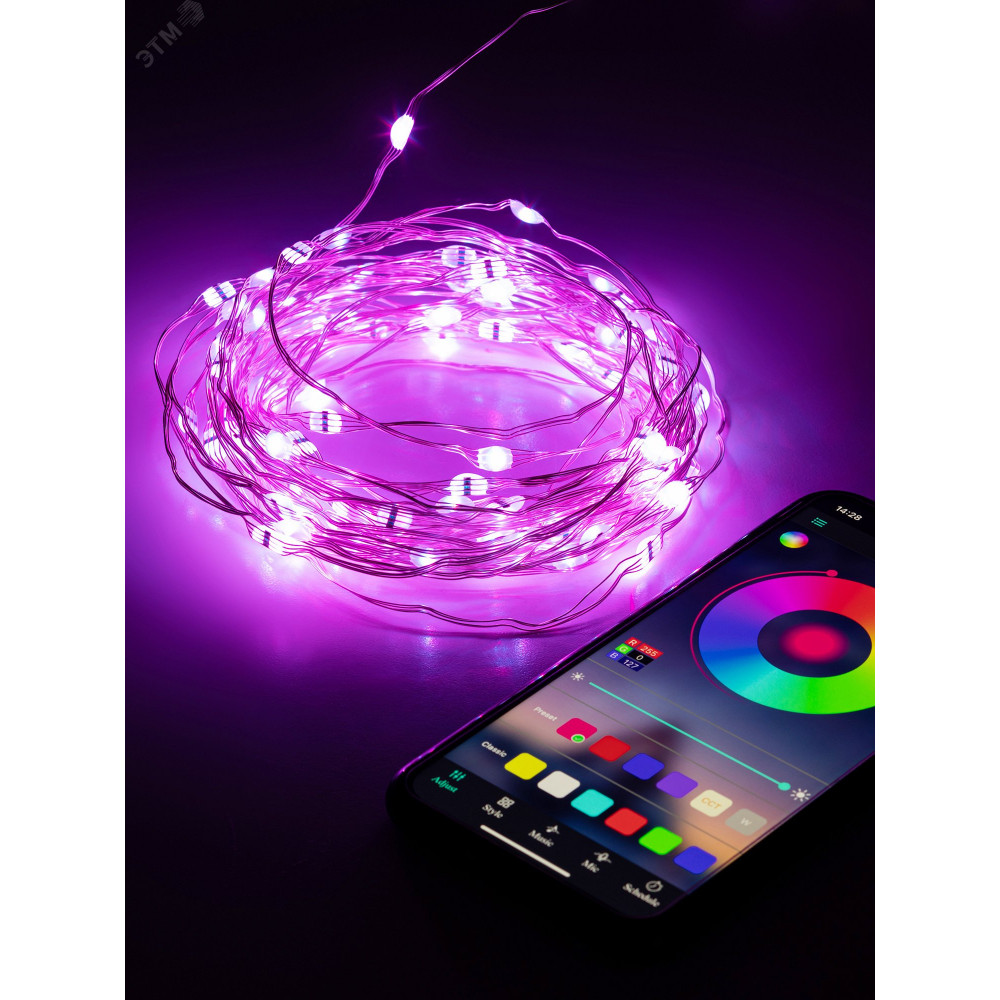ЕGNIG - PU Гирлянда Нить с пультом, RGB, 5 м, 220 V, с таймер, с музыкой, с упр. через моб. прилож., длина провода Б0055994