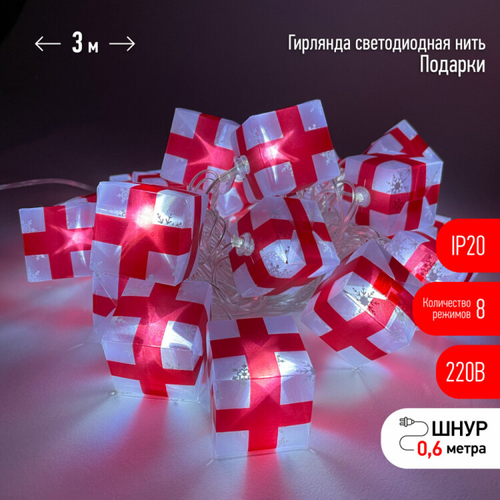 Доставка ENIN-3P Гирлянда LED Нить Подарки 3 м холодный свет, 220V, IP20 (24/192) Б0041895