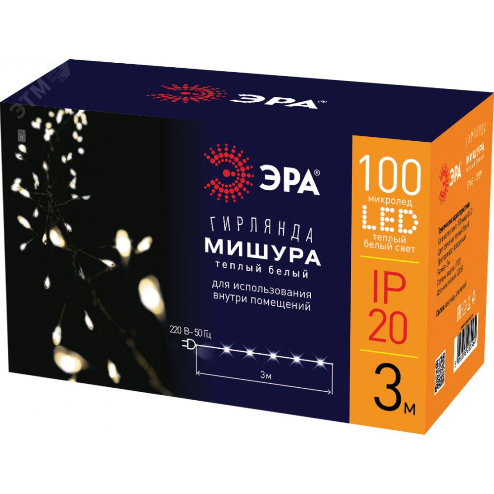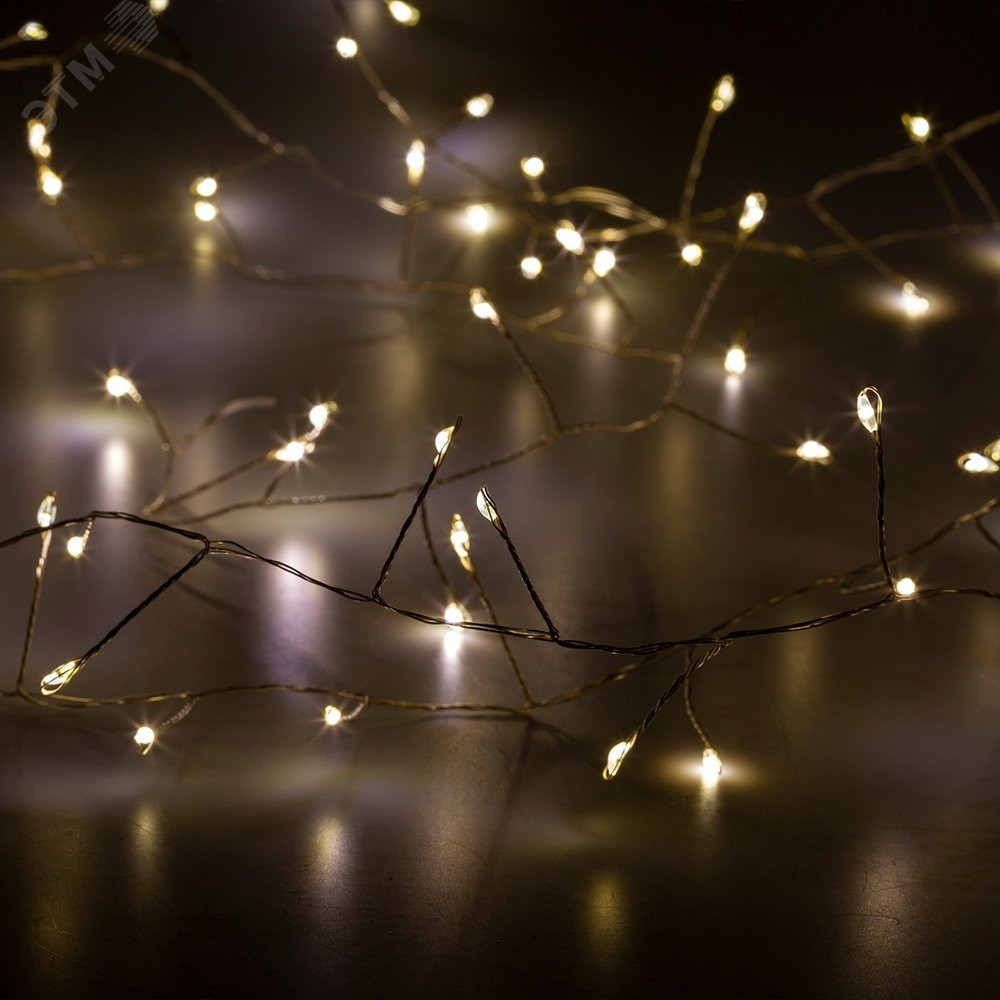 Описание Светодиодная новогодняя гирлянда ЕNIG - 100M нить Мишура 3 м теплый белый 150 microLED 220 V Б0051871