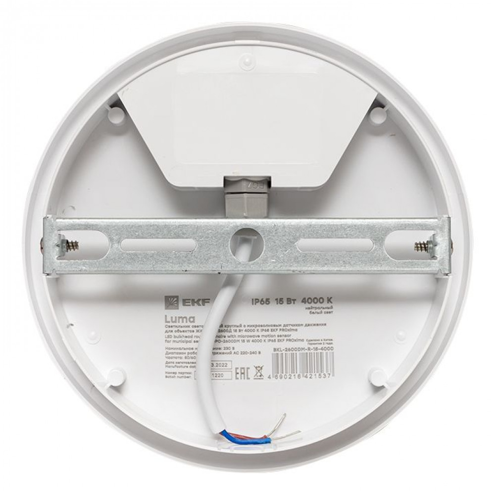 Описание Светильник светодиодный ЖКХ ДПО-2600 15Вт 4000К IP65 круг с микроволновым датчиком движения PROxima BKL-2600DM-R-15-4000
