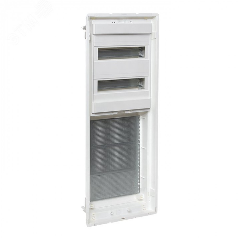 1. Корпус щита с din-рейками, шинами N/PE, пластроном и двумя съемными фланцами – 1 шт