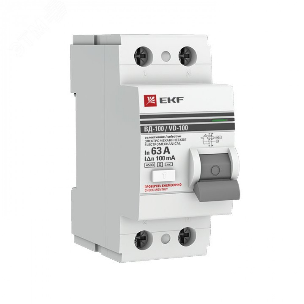 Выключатель дифференциального тока (УЗО) 2п 63А 100мА тип AC ВД-100 (электромех.) PROxima elcb-2-63-100S-em-pro, Дифференциальная защита: УЗО, дифф блок