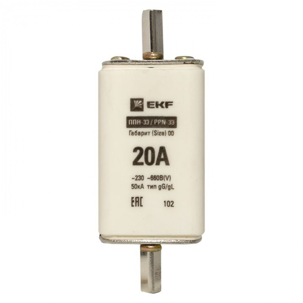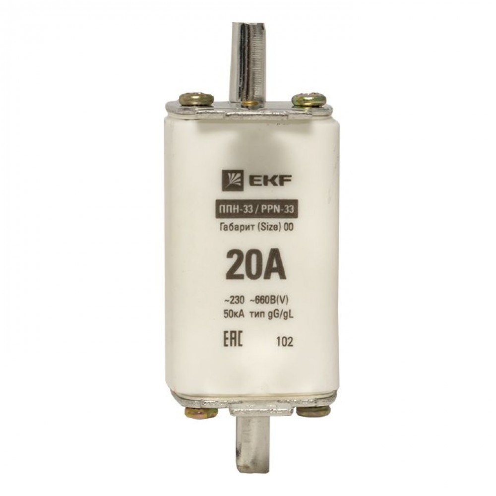 Плавкая вставка ППН-33 160/ 20А габарит 00 EKF. Предохранители плавкие ППН EKF, укомплектованные плавкими вставками типа gG/gL, предназначаются для защиты кабельных линий и промышленных электроустановок от токов перегрузки и короткого замыкания. Предохранители применяются в электрических сетях переменного тока частотой 50 Гц с напряжением до 660В. Применяются для крепления в распределительных и вводно-распределительных устройствах. Предохранители плавкие ППН могут устанавливаться в основание с держателем, а также в специально предназначенные рубильники. В комплект поставки предохранителей плавких ППН основание с держателем не входит и приобретается отдельно.
