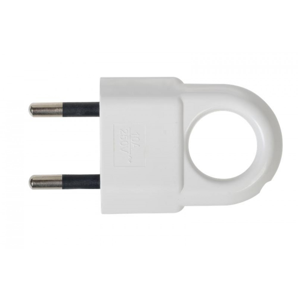 Вилка пластиковая прямая (евровилка CEE 7/16) б/з с кольцом 10А 250В IP20 бел. 30474 6, Разъем силовой и модуль комбинируемый