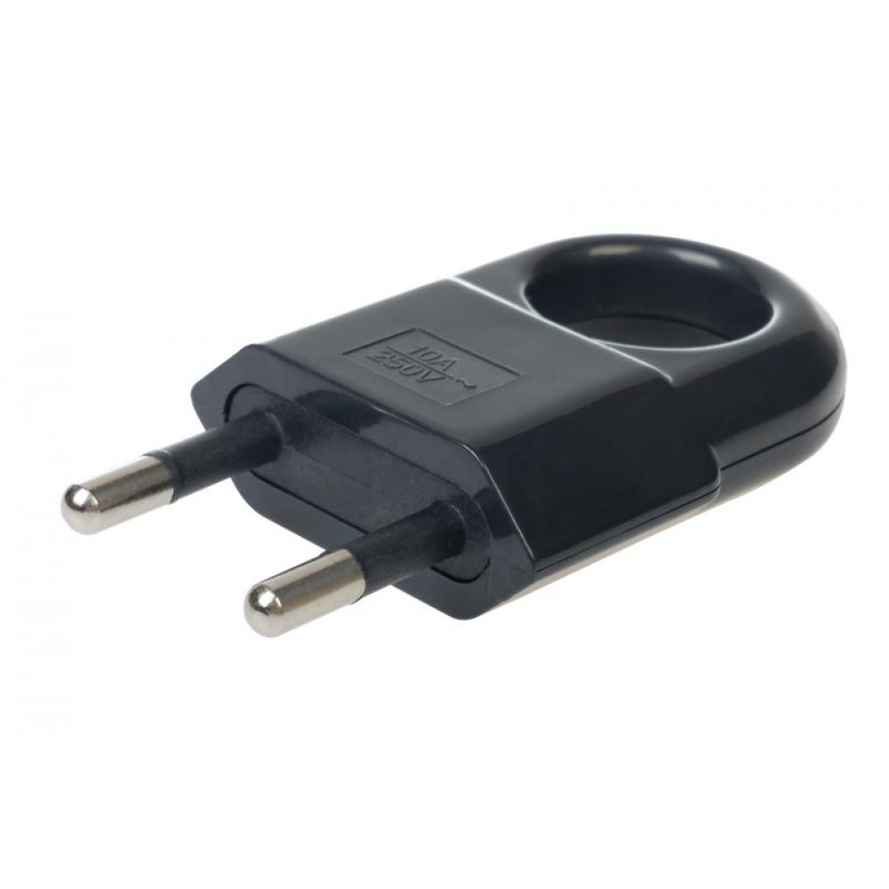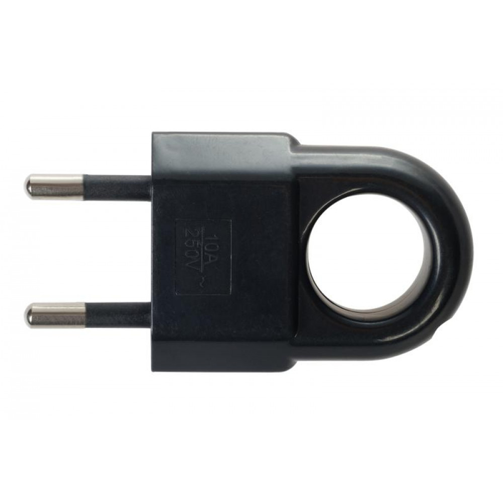 Вилка пластиковая прямая (евровилка CEE 7/16) б/з с кольцом 10А 250В IP20 черн. 30475 3, Разъем силовой и модуль комбинируемый