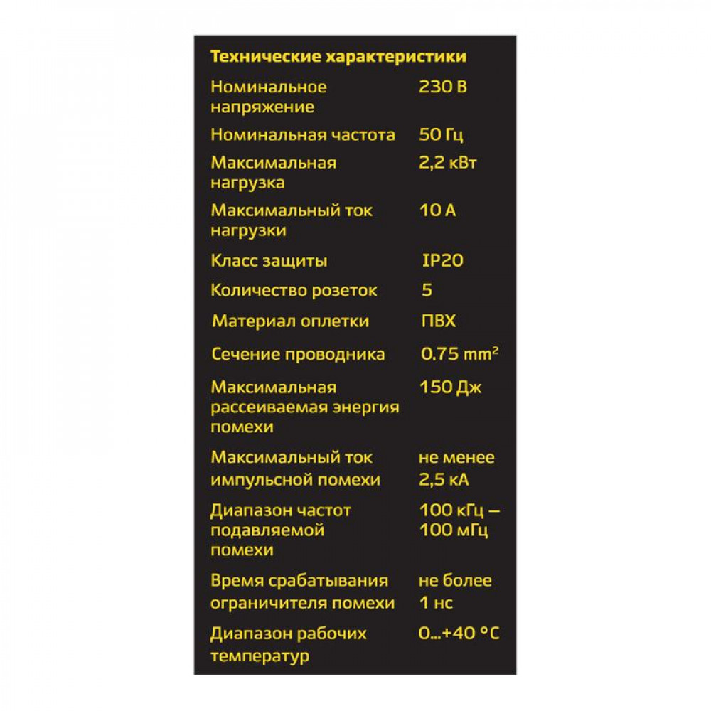 Фильтр сетевой 5х5м с/з с выкл 2кВт 10А/2 сл. кость 32573 4 →