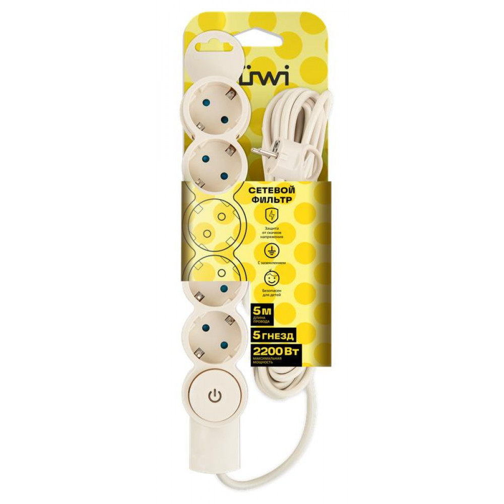 Фильтр сетевой 5х5м с/з с выкл 2кВт 10А/2 сл. кость 32573 4, Удлинитель, сетевой фильтр