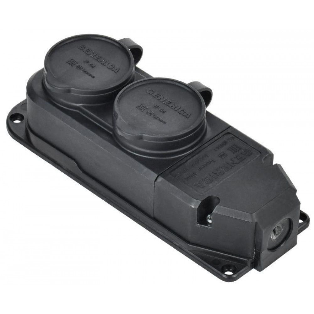 Колодка удлинителя 2-м 16А IP44 с защ. крышкой каучук черн. ERK20-016-02-44-K02-G, Удлинитель, сетевой фильтр
