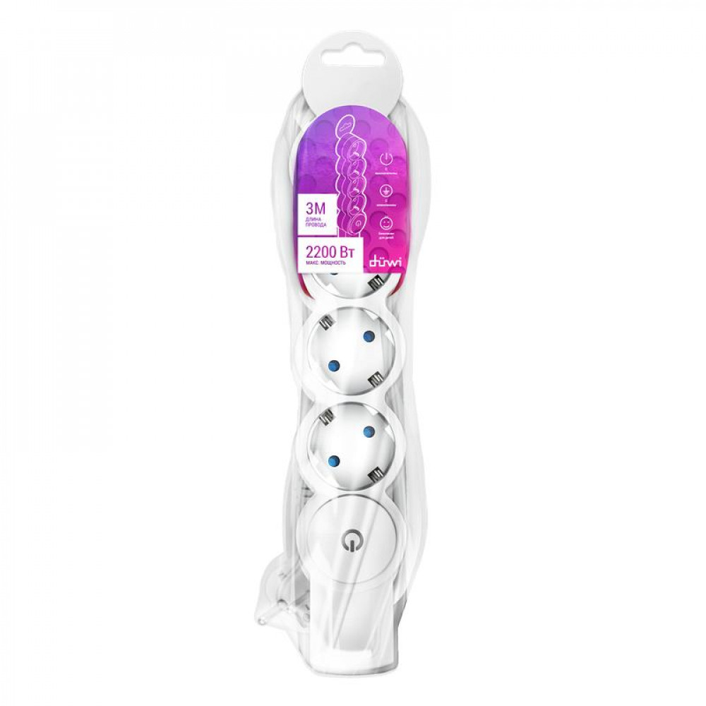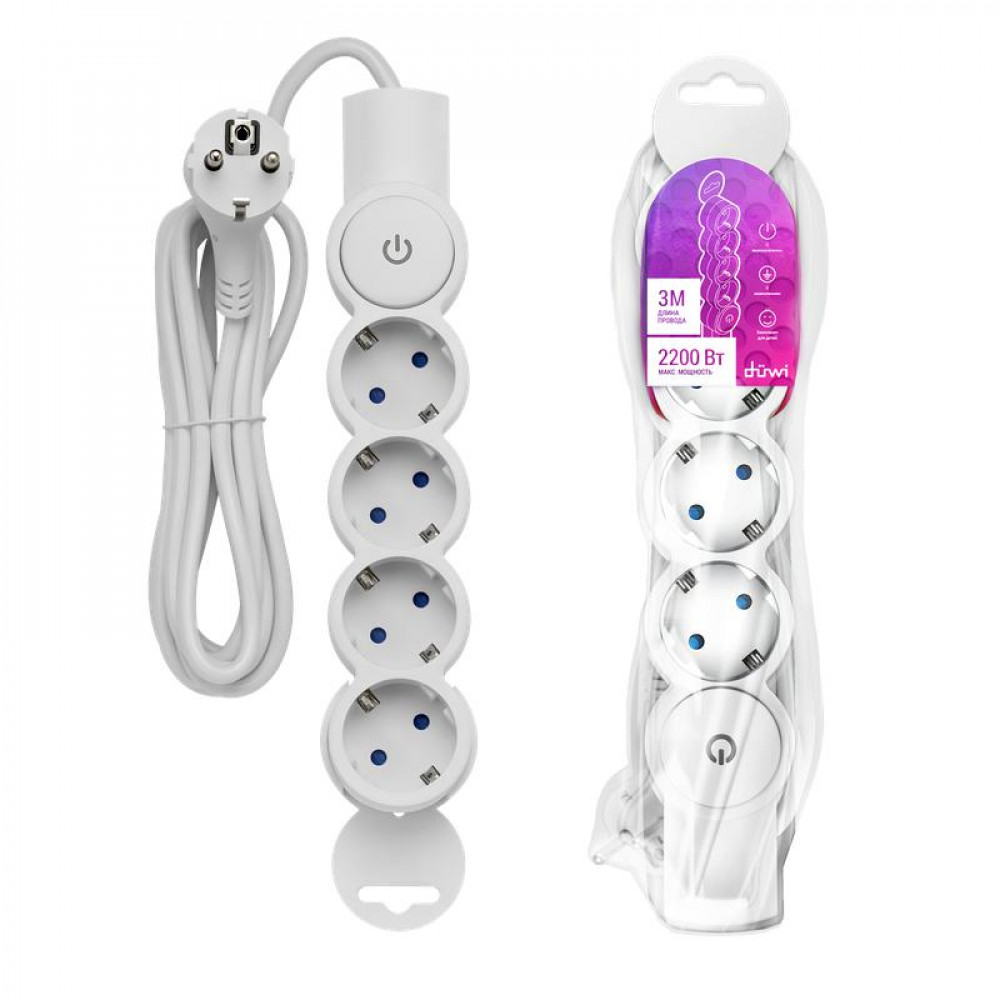 Удлинитель 4х3м с заземл. 10А IP20 ПВС 3х0.75 с выкл. защ. шторки 32014 4, Удлинитель, сетевой фильтр