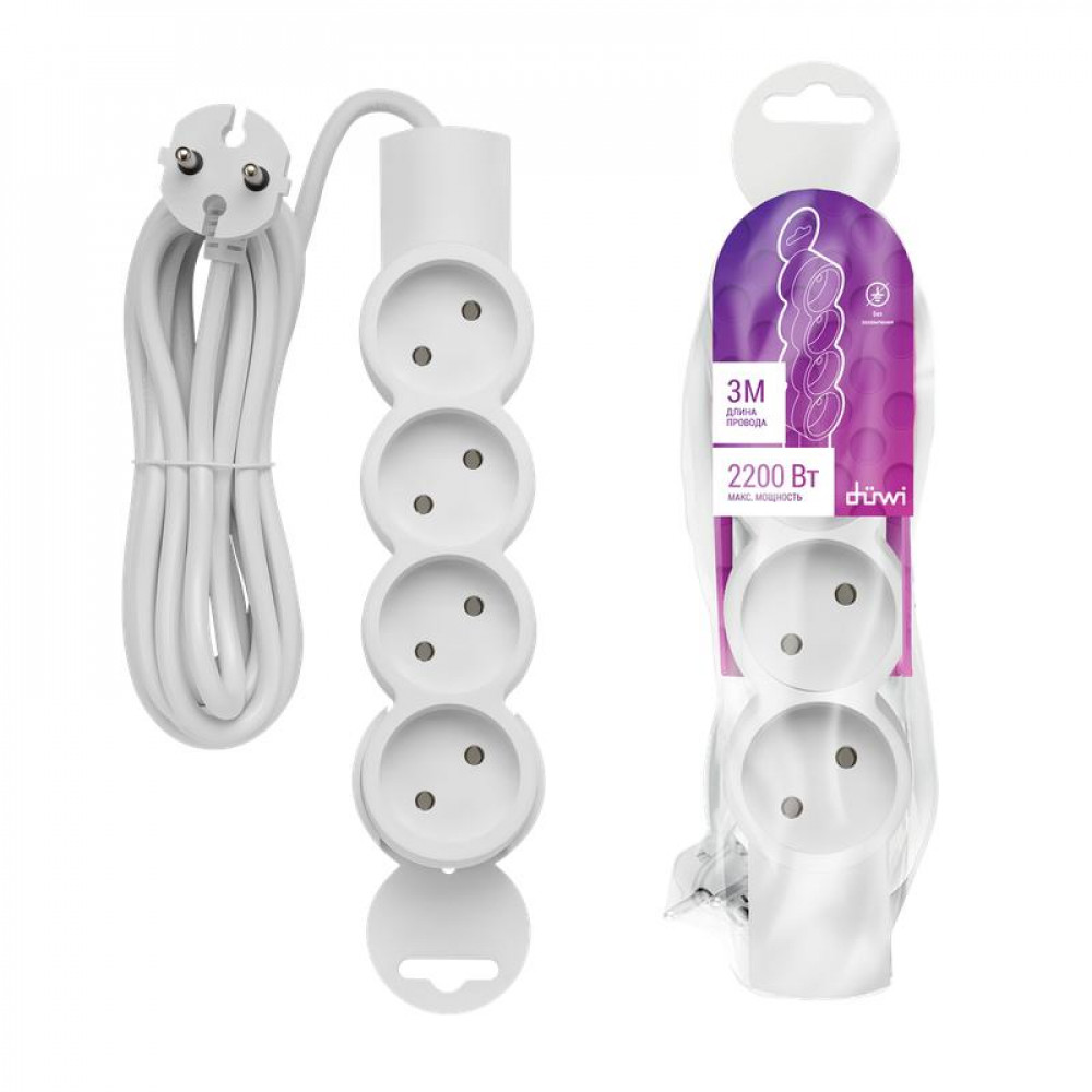 Удлинитель 4х3м без заземл. ПВС 2х0.75 32010 6, Удлинитель, сетевой фильтр