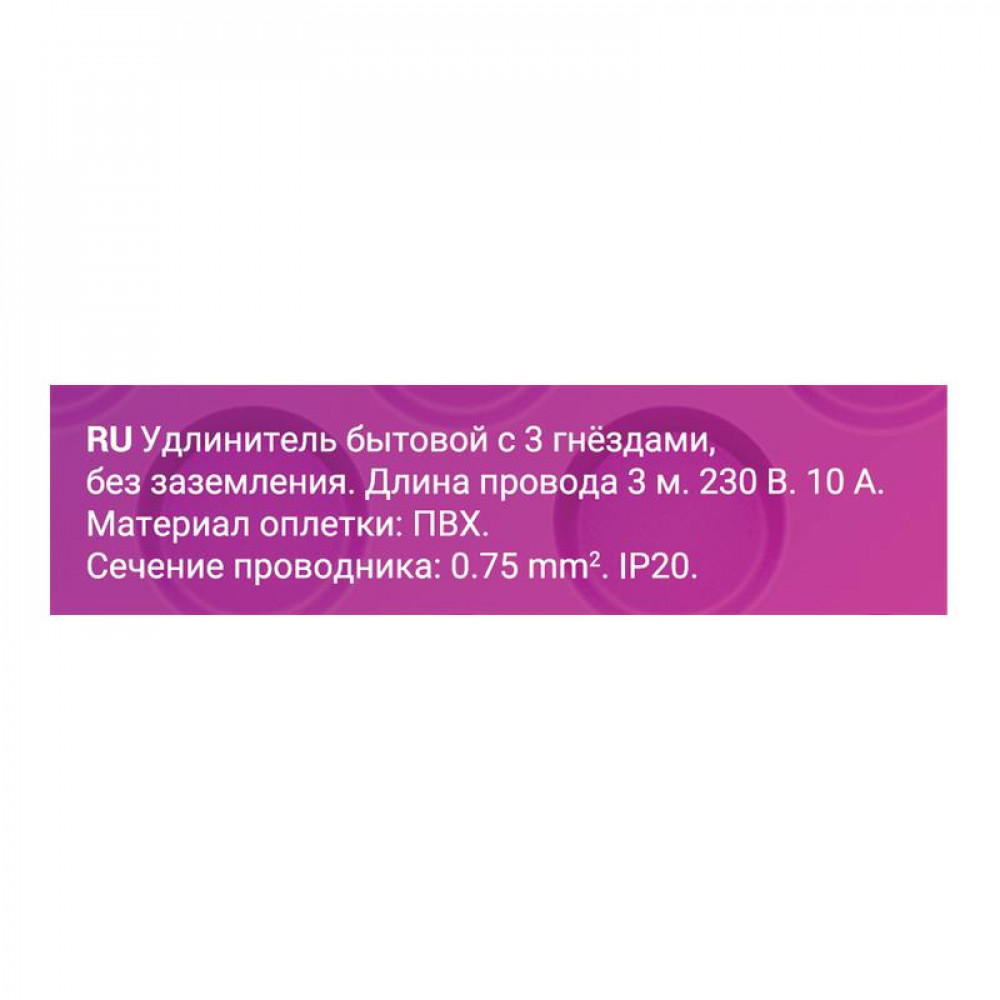 Описание Удлинитель 3х3м без заземл. ПВС 2х0.75 32002 1