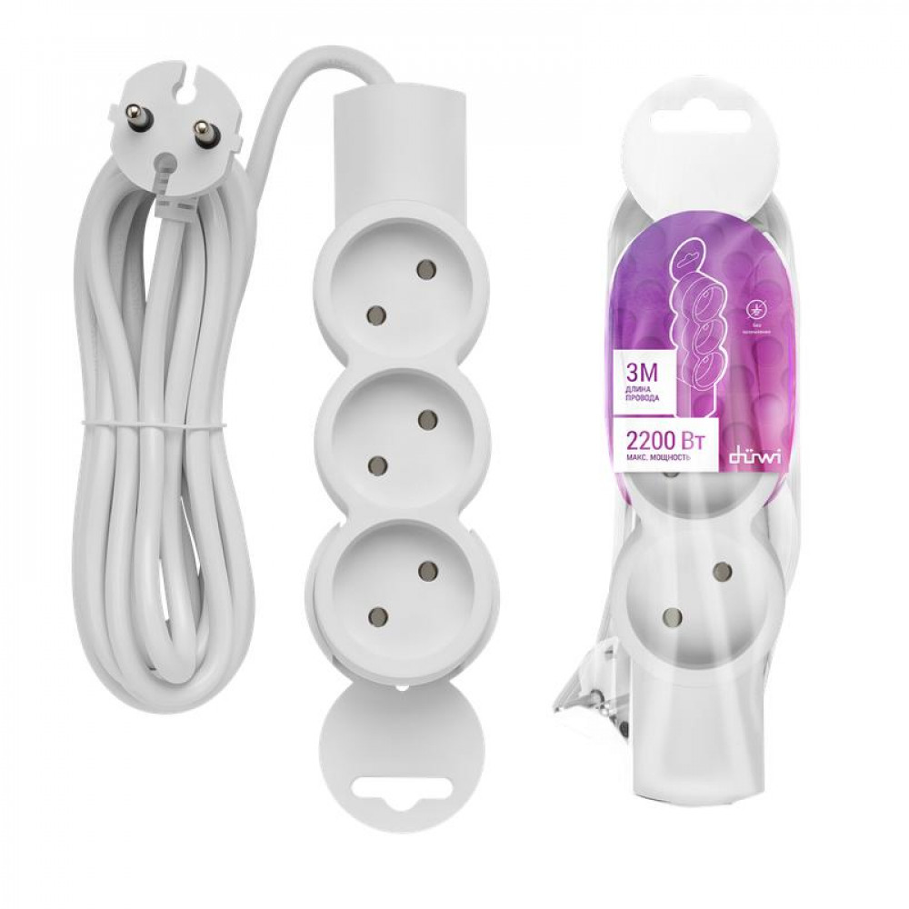 Удлинитель 3х3м без заземл. ПВС 2х0.75 32002 1, Удлинитель, сетевой фильтр