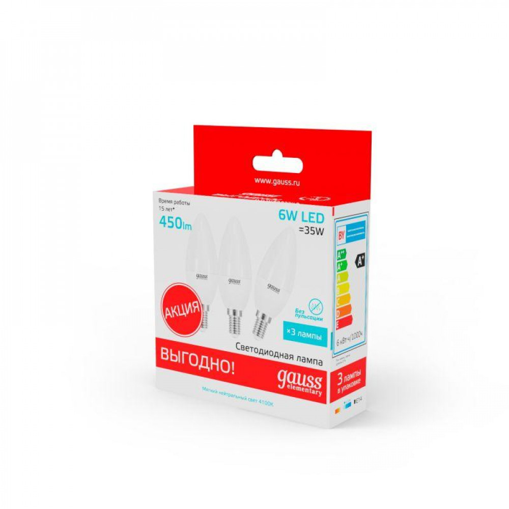 Светодиодные лампы Gauss Elementary Candle созданы в форме свечи. Лампы подойдут как для домашнего, так и для коммерческого использования. Такой тип освещения прекрасно смотрится в светильниках без плафонов или устанавливается в люстры и бра. Модель обладает широким диапазоном цветовых температур и мощностей, что поможет создать атмосферу тепла и уюта или концентрации. Равномерный спектр света создает зрительный комфорт в любом помещении. Данный тип освещения от Gauss обеспечивают стабильную работу в течение всего срока службы.