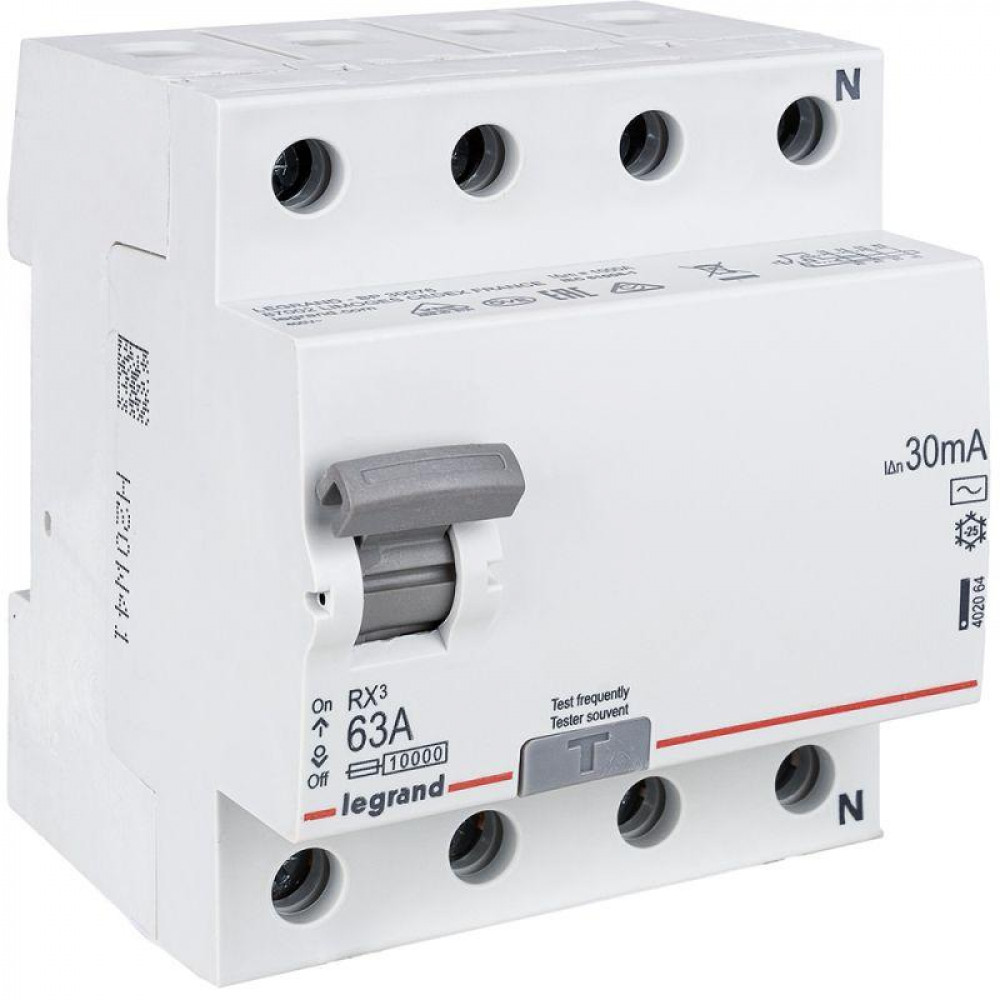 Выключатель дифференциального тока (УЗО) 4п 63А 30мА тип AC RX3 Leg 402064, Дифференциальная защита: УЗО, дифф блок
