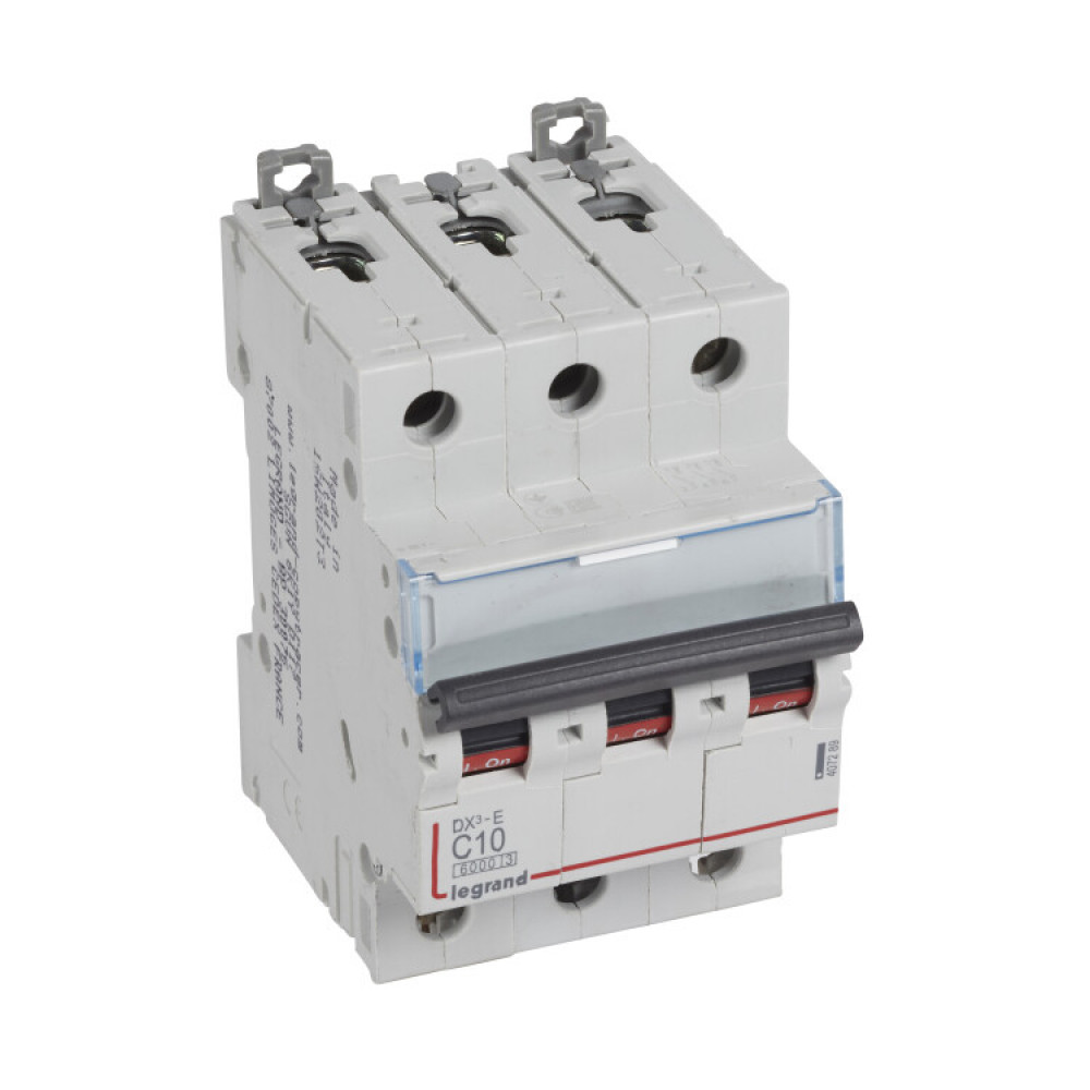 Описание Выключатель автоматический модульный 3п C 10А 6кА DX3-E 6000 3мод. 230/400В Leg 407289