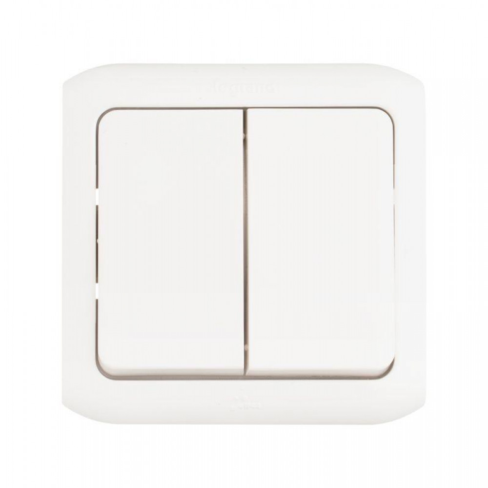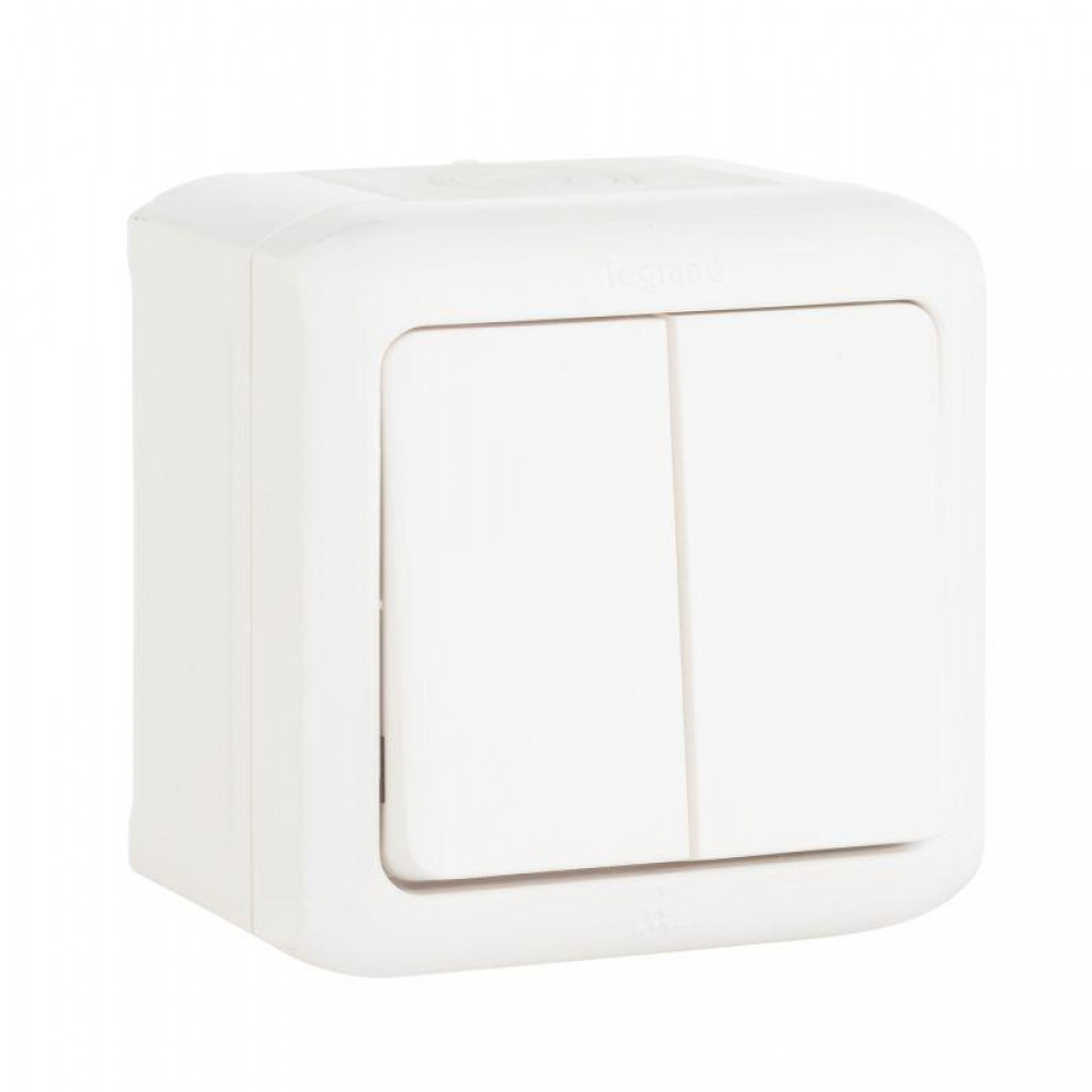 Выключатель 2-кл. ОП Quteo 10А IP44 250В 10AX бел. Leg 782302, Выключатель и переключатель открытого монтажа