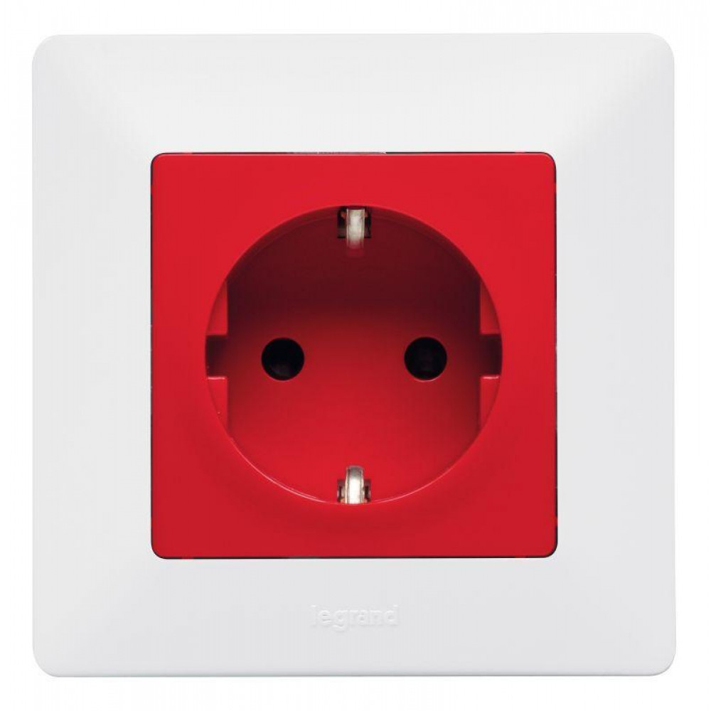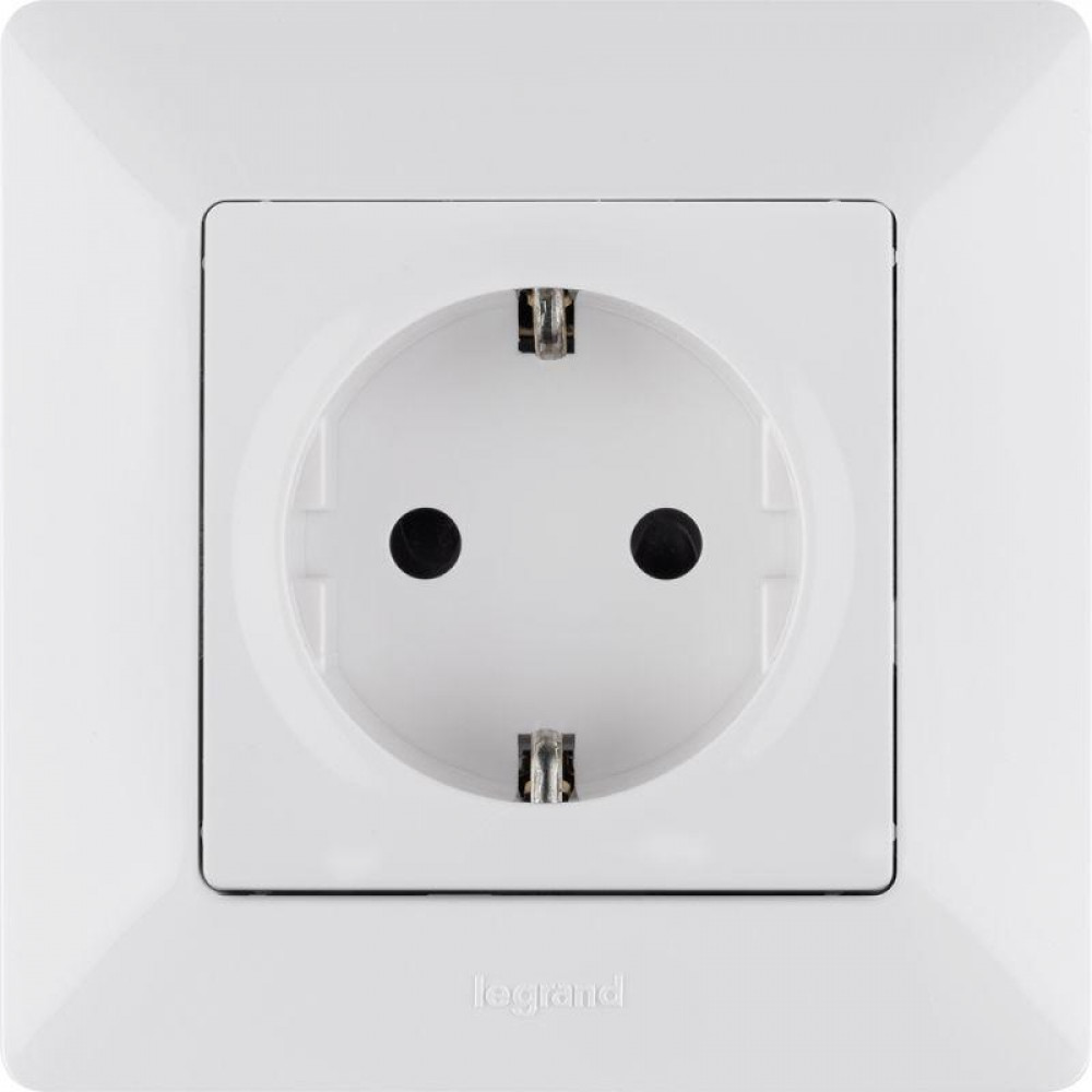 Розетка 1-м СП Valena Life 16А IP20 250В 2P+E защ. шторки безвинтов. клеммы с лицев. панелью механизм бел. Leg 753420, Розетка скрытого монтажа